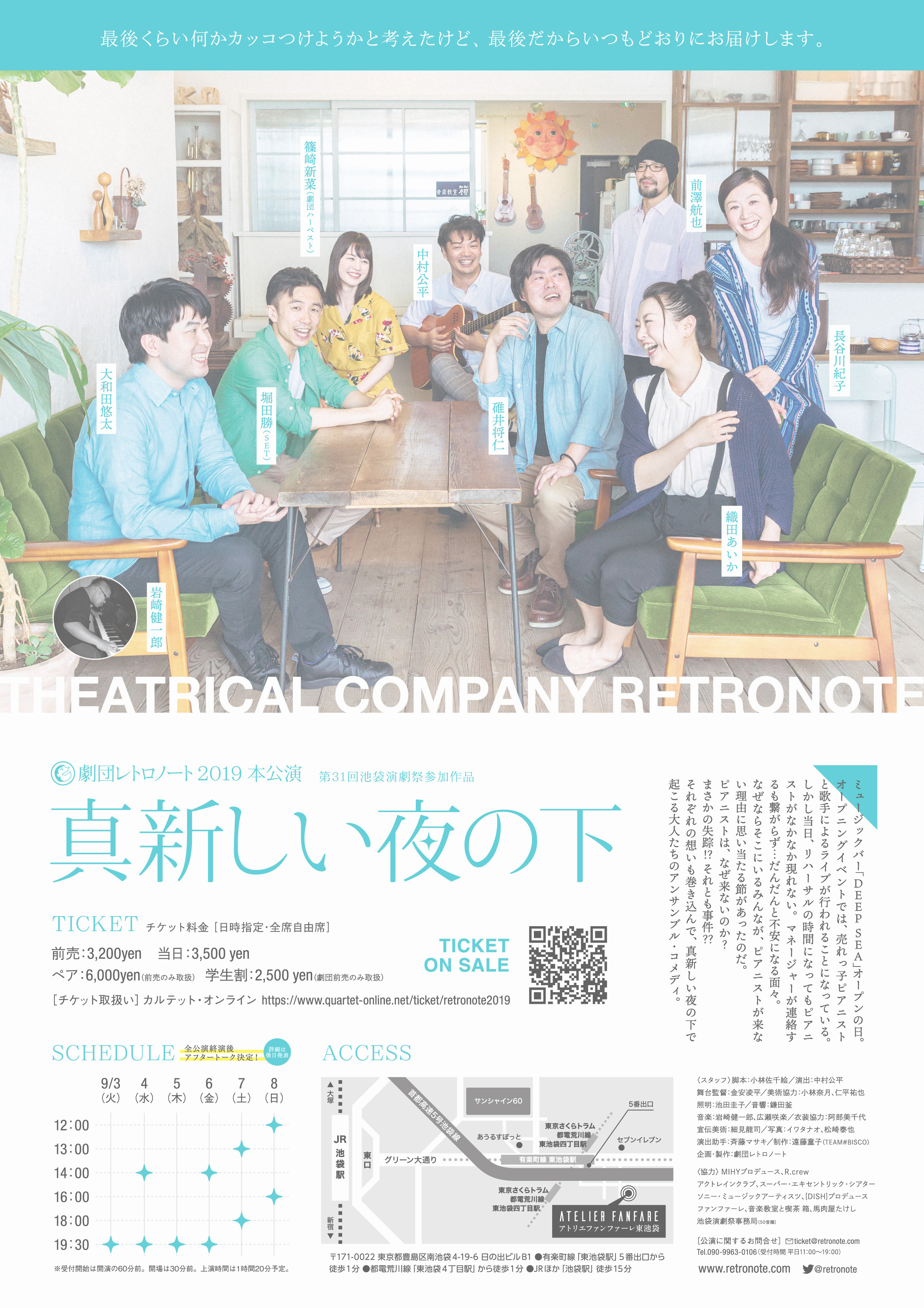 劇団レトロノートが3年ぶりに本公演を行います。第31回池袋演劇祭に参加させて頂きます。素晴らしいキャスト・スタッフにお集まり頂きました。詳細は順次発表していきますので、お待ちください。